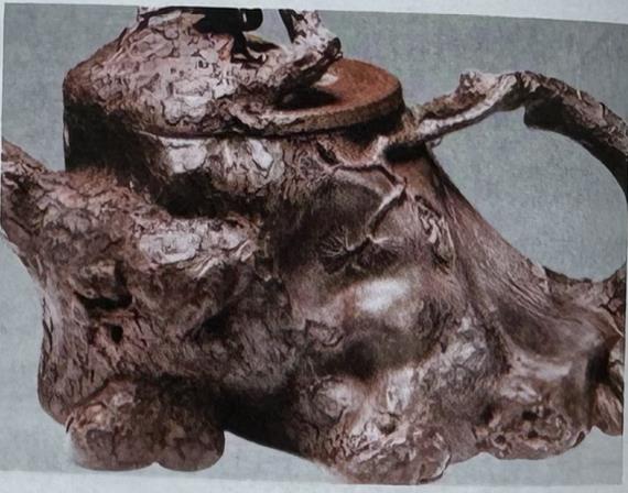 • Ấm Tùng vững vượt mây (劲松凌云壶) của Từ Hán Đường (徐汉棠), lớp vỏ tùng được đắp bằng đất; giữa các khe vỏ có hang cây giấu chuột tùng, khi nghiêng ấm rót trà, chuột có thể thò đầu chuyển động.
