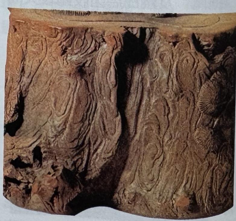 • Ấm Tùng Đoạn (松段壶) của Trần Minh Viễn (陈鸣远), phần vỏ cây tùng trên thân ấm được thực hiện bằng kỹ pháp đắp (堆).
