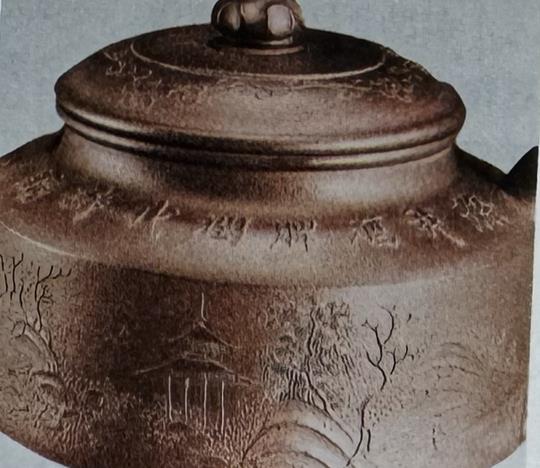 • Ấm Chung Đức (钟德壶) làm từ thanh thủy nê, kết hợp sử dụng cả ba kỹ pháp: ấn hoa, nê hội, đắp hoa, tất cả đều dùng đất cùng màu với thân ấm.