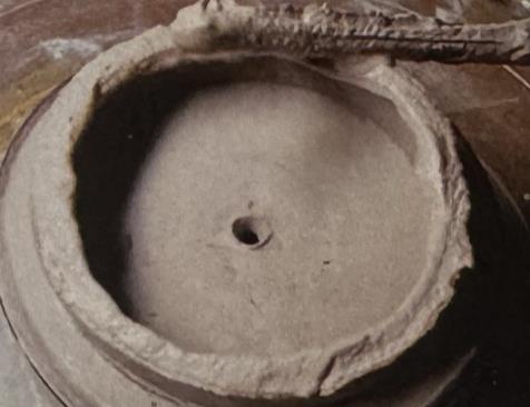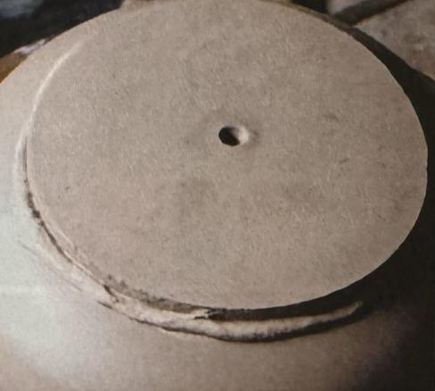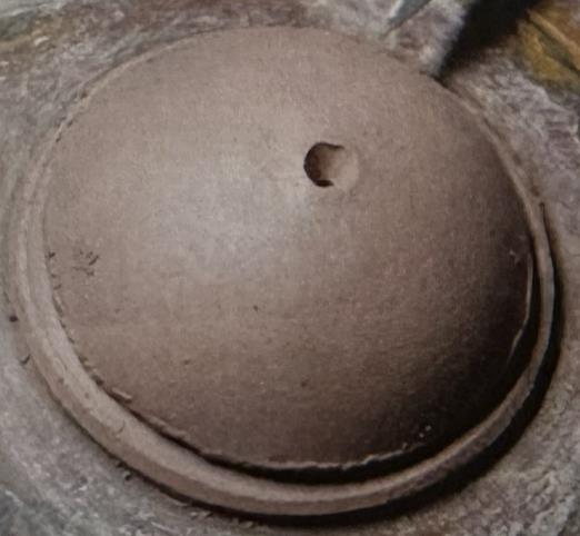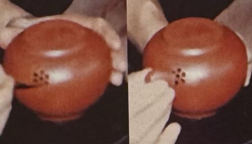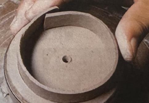 (6) Trét đất dính lên phần gốc vành miệng, dán chính giữa bản nắp, không được lệch tâm. Dán chặt nắp và vành miệng, gọi là “lên miệng con” (上子口)。