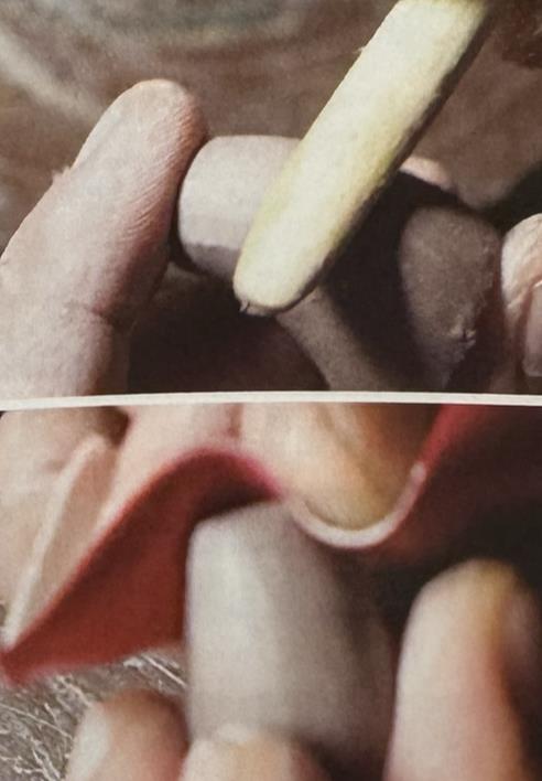 (4) Làm đất kéo vành miệng (đất “miệng con”) – 口延泥条, phần gốc phải dày hơn đầu vành.
