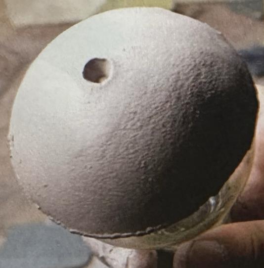 (8) Dùng trản vỗ tạo hình cầu cho nắp, đục một lỗ nhỏ ở chính giữa.