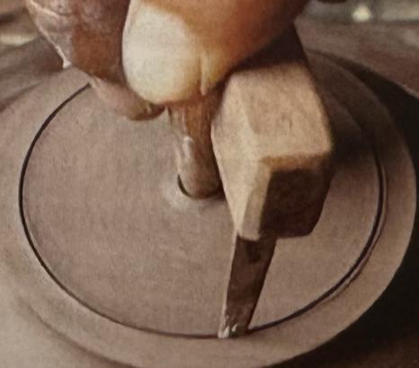 Dùng công cụ “câu đáy” để gia công phần đáy ấm, giúp toàn thể dáng đáy gọn gàng, hoàn chỉnh.