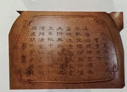 Mặt 1: Khắc bài thơ ngự đề của Càn Long "Vũ Trung Phanh Trà Phiếm Ngọa Du Thất Thị Hữu Tác" (雨中烹茶泛卧游书室有作):"Khê yên sơn vũ tương không mông,Sinh y độc toạ dương liễu phong.Trúc lô lão lang phiếm thanh lãn,Mễ gia thư họa tương vô đồng.Tùng phong tả xứ sinh ngư nhãn,Trung Lãnh Tam Hiệp hà tu biện.Thanh hương tiên lộ tâm thi tỳ,Toạ gian bất giác phương ẩn chuyển."