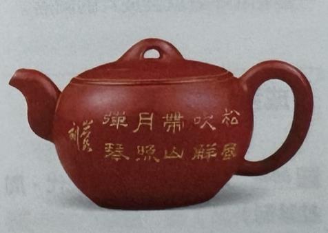 Thân ấm dáng bát (钵形), bụng dẹt tròn (扁圆腹), miệng đứng và viền môi (直口唇边), vòi ngắn (短流), quai tròn (环把), chân vòng (圈足), nắp vòm lõm ở giữa (拱盖中凹), núm ngọc bảo châu (宝珠钮).