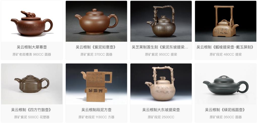 Lại như “Thị tử ấm” (柿子壶) – một hình thức thường thấy – ông dùng nhiều thủ pháp để chế tác: có kiểu bốn cánh gân thị nhẵn mịn, tiện cho việc khắc trang trí minh văn, cũng có kiểu ấm “thị tử nắp lật” (翻盖柿子壶) chú trọng biểu hiện trạng thái sinh thái của quả thị, bề mặt nhẵn mượt mà, hàm chứa, thanh tú động lòng người. “Truyền lò ấm” (传炉壶) thì dày dặn, mộc mạc; “Hồ lăng ấm” (弧菱壶) thì “vuông trong thấy tròn, tròn trong lộ vuông” – tác phẩm của ông tự nhiên như trời sinh, hoàn toàn không có vẻ gọt giũa cầu kỳ.