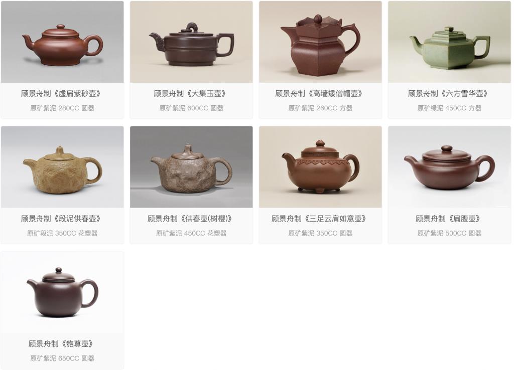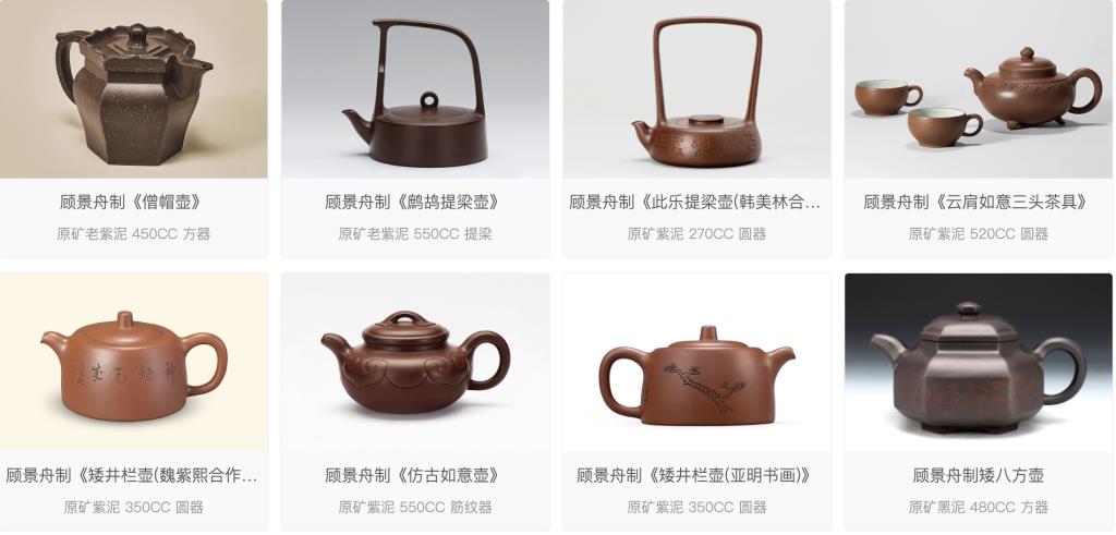 Cố Cảnh Châu vận dụng mỹ học hiện đại vào thiết kế ấm tử sa, mở ra cảnh giới mới cho nghệ thuật ấm trà. Ông cho rằng tử sa giống thư pháp và hội họa, có phân phẩm cấp: thần phẩm, cực phẩm, tinh phẩm, năng phẩm. Ông đề cao 4 yếu tố thẩm mỹ: hình (形), thần (神), khí (气), thái (态) – tức hình dáng, thần thái, khí vận và tư thế. Các tác phẩm tiêu biểu như: