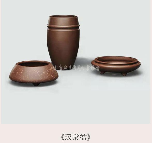 Ở mảng chậu tử sa, ông càng thể hiện rõ tài năng: tạo hình tinh xảo đa dạng, kết cấu điểm – tuyến – diện cân bằng hài hòa, xử lý chi tiết nghiêm cẩn, chủng loại chậu lên tới hàng trăm mẫu, từng đứng đầu trong ngành chậu tử sa toàn quốc. Ngay từ thập niên 1960–1970, ông đã dốc sức nghiên cứu chế tác 250 loại chậu trung, tiểu và vi hình, danh tiếng lan xa, được giới chơi cây cảnh gọi là “chậu Hán Đường”.