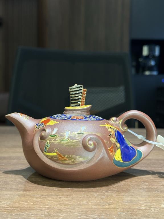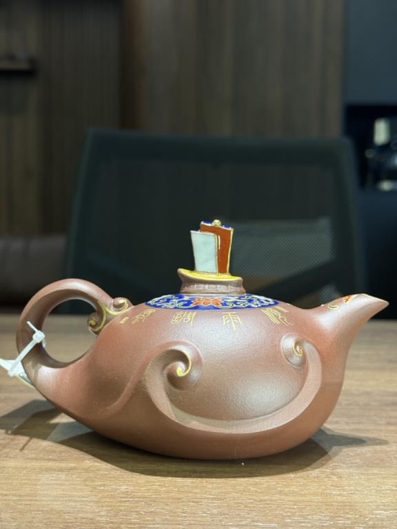 Tác phẩm “一帆风顺” là một hình ấm cổ điển, tượng trưng cho sự suôn sẻ, may mắn trong cuộc sống và công việc. Hình dáng thân thuyền, miệng ấm là cánh buồm vươn ra – mang ý nghĩa khởi hành thuận lợi, mưa thuận gió hòa.