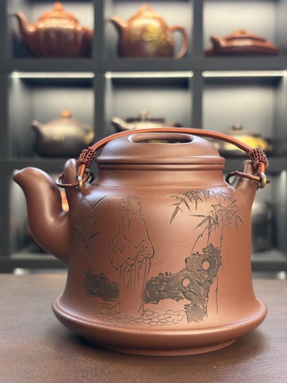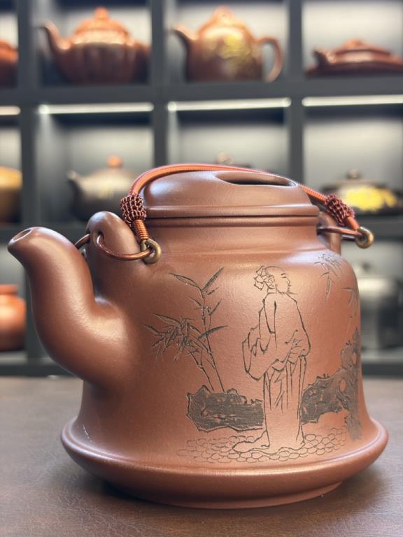 • Dáng ấm: Cải biên từ Dương Thống (洋桶壶) – hình trụ đứng, thân cao, phần thân được Chu Tân Nguyên làm thon gọn, nhẹ nhàng hơn, tạo cảm giác thanh thoát mà vẫn giữ được khí thế.