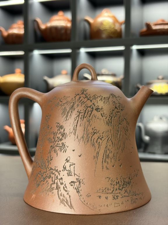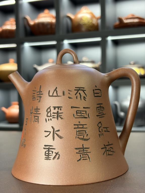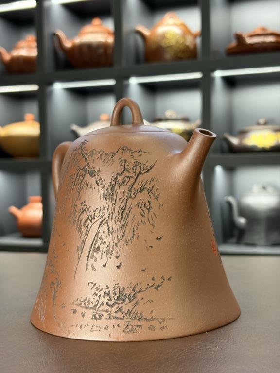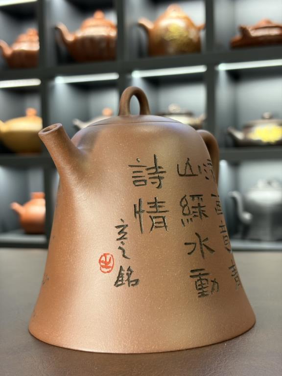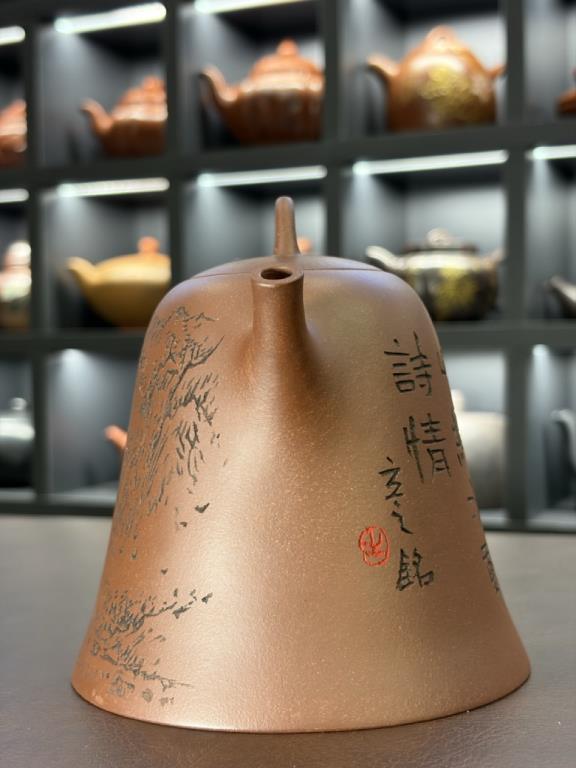 Tác phẩm “Kim Chung” là một ấm tử sa toàn thủ công do nghệ nhân Sở Lập Chi – Đại sư Công nghệ Mỹ thuật tỉnh Giang Tô – chế tác bằng chất đất đề tào thanh tuyển chọn. Tên gọi “Kim Chung” lấy cảm hứng từ hình tượng chuông vàng cổ xưa – một biểu tượng trong văn hóa phương Đông, đại diện cho phúc vận, an khang và trí tuệ.