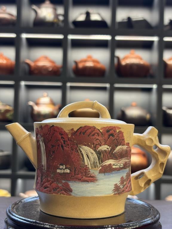 Điểm nhấn đặc biệt là phần trang trí được khắc họa theo danh tác của đại sư hội họa Trung Quốc hiện đại – Lý Khả Nhiễm, khiến cho toàn bộ bộ ấm không chỉ là một trà cụ nghệ thuật, mà còn là một kiệt tác hội họa thu nhỏ, nâng tầm giá trị sưu tầm và thưởng lãm.