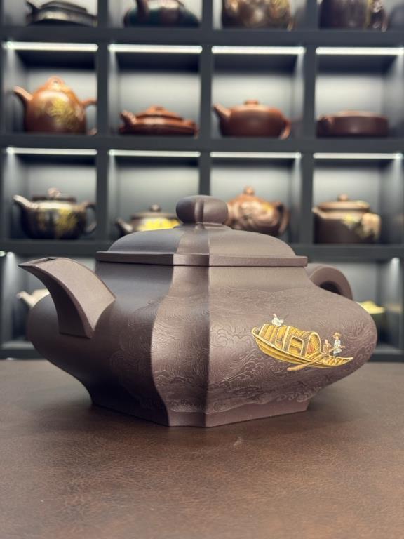• Dáng ấm: Tứ Phương Hư Biển (四方虚扁) được thiết kế theo kiểu dáng bốn phương với thân dẹt, tạo cảm giác vững chãi nhưng vẫn thanh thoát, mềm mại.