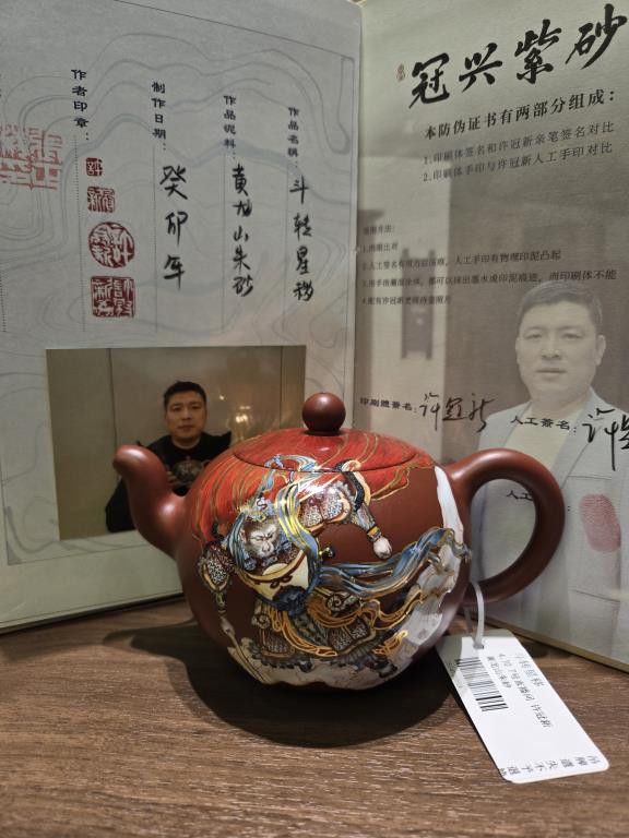 🎨 Hoa văn trên ấm được trang trí bằng kỹ thuật 珐琅彩 (pháp lan thái) do đại sư Trương Chính Hải thực hiện, tạo nên hiệu ứng màu sắc sáng rực – trang nhã – sống động như họa. Mỗi nét vẽ là sự kết tinh giữa truyền thống và mỹ thuật đương đại.