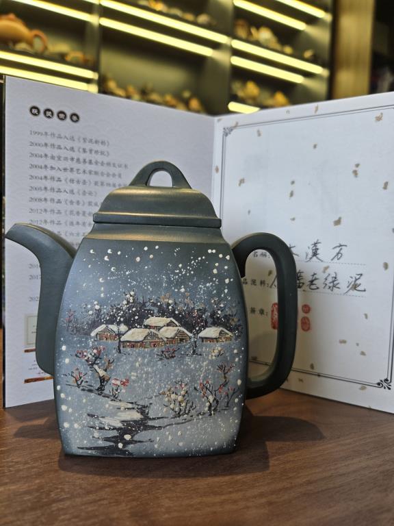Chất Lão Lục Nê dùng trong ấm là loại đất giàu khoáng, khai thác lâu đời từ Hoàng Long Sơn, có đặc tính thoáng khí tốt và dưỡng trà ổn định, khi nung lên cho sắc xanh xám cổ kính, thích hợp cho người chơi yêu thích nét trầm ổn, cổ xưa.
