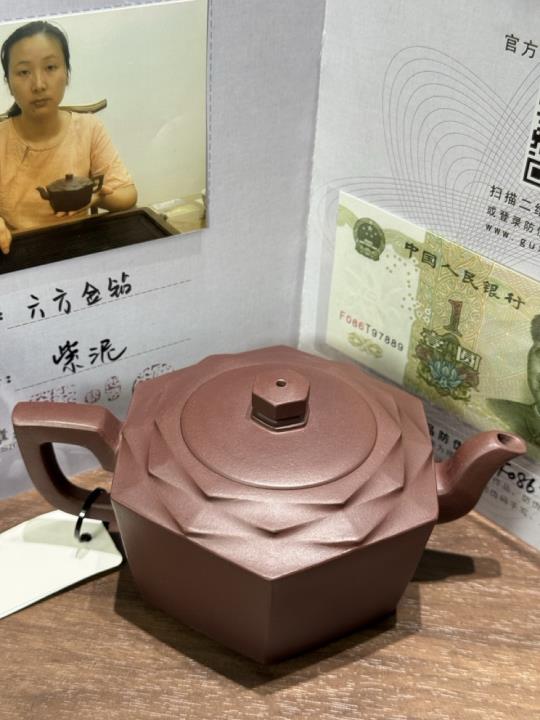 Chiếc ấm Lục Phương Kim Toản là một tác phẩm mang phong cách hình học cứng cáp, sắc sảo, kết hợp giữa cấu trúc sáu cạnh (lục phương) và hình tượng “kim toản” – tức viên kim cương. Dáng ấm thể hiện rõ tinh thần khí tiết, mạnh mẽ và chính trực – rất phù hợp với những người yêu thích vẻ đẹp góc cạnh và dứt khoát trong nghệ thuật tử sa.