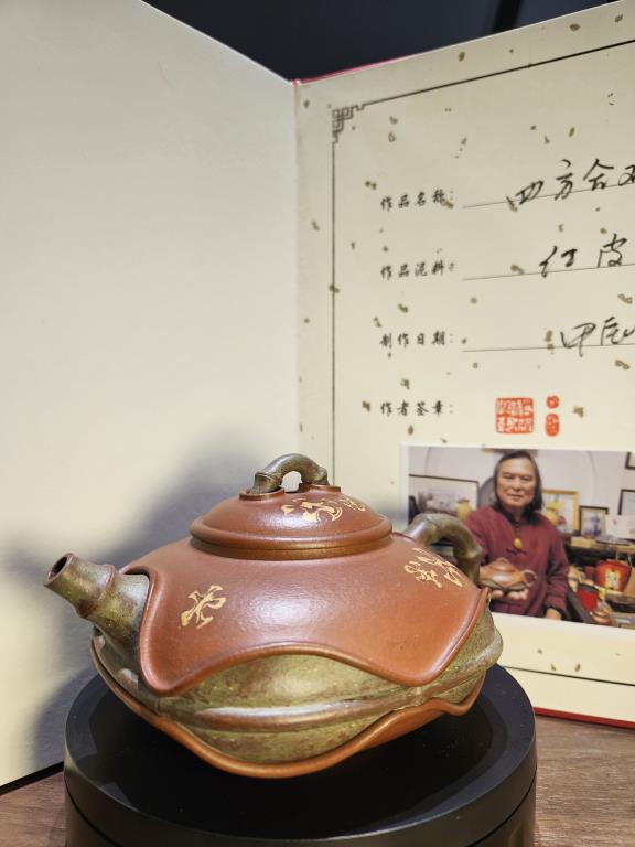 Ấm Tứ Phương Hợp Hoan là một thiết kế đầy táo bạo và tinh tế của nghệ nhân Đới Tĩnh Ba, khi chuyển hóa tinh thần của tròn thành vuông, dùng thủ pháp kỹ thuật cao để biến một dáng tròn truyền thống thành phương khí phức tạp mà vẫn giữ được tính cân đối và mỹ cảm vượt trội.