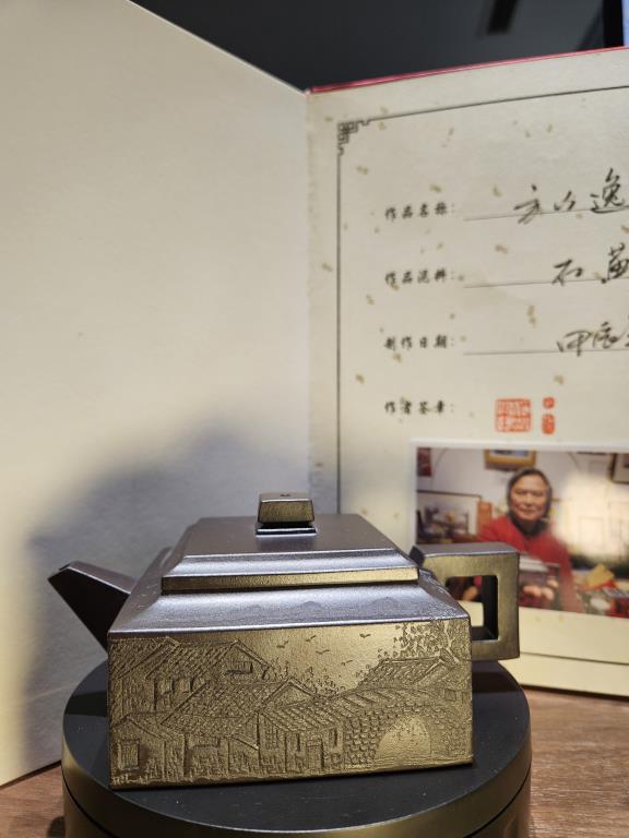 Ấm Phương Sơn Ẩn Sĩ của nghệ nhân Đới Tĩnh Ba là một tác phẩm đậm chất văn nhân khí – vừa trầm tĩnh, vừa phóng khoáng. Dáng ấm phương vuông trang trọng, đường nét mạnh mẽ, góc cạnh rõ ràng nhưng không thô cứng, thể hiện sự cân bằng giữa cứng và mềm, giữa khuôn phép và tự do.