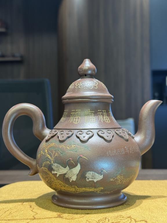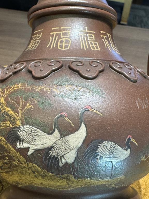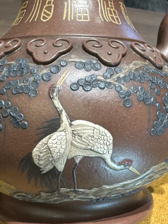 • Hình ảnh hạc: Được khắc họa hoặc đắp nổi tinh xảo trên thân ấm, thể hiện sự sống động và mềm mại.