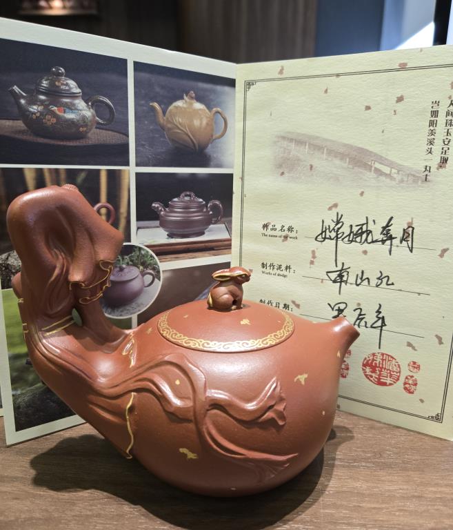 Ấm “Hằng Nga Bôn Nguyệt” lấy cảm hứng từ truyền thuyết cổ Trung Hoa về nàng Hằng Nga bay lên cung trăng, tượng trưng cho vẻ đẹp, sự thanh cao, thoát tục và mộng ảo.