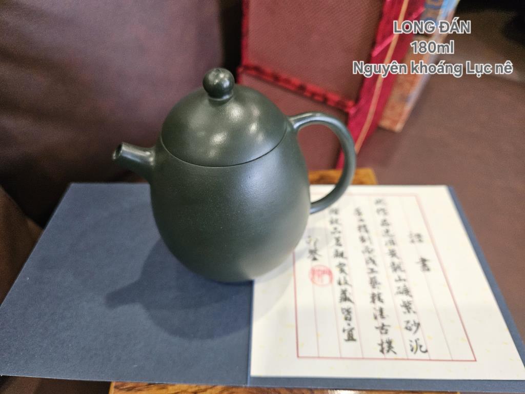 Trần Xuân Yến là nghệ nhân chuyên về các dáng ấm cổ điển với đặc trưng là sự chuẩn xác trong tỷ lệ hình khối, độ mỏng đồng đều của thân ấm, và độ kín khít tuyệt hảo của nắp – thân – vòi. Với ấm Long Đán dung tích 180ml, bà thể hiện rõ năng lực khống chế hình dáng và làm nổi bật vẻ đẹp mộc mạc của Lục Nê nguyên khoáng.