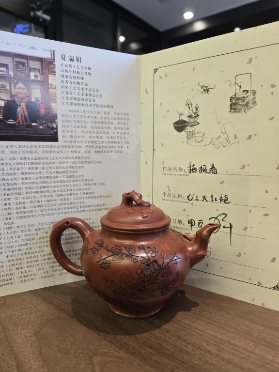 Dáng ấm thường nhỏ gọn, mềm mại, có thể trang trí khắc mai trên nắp, thân hoặc núm – tạo nên cảm giác điềm đạm, sâu lắng nhưng không kém phần sinh động. Đây là mẫu ấm rất phù hợp với người yêu nét thanh nhã – cổ phong – có chiều sâu nội tâm.