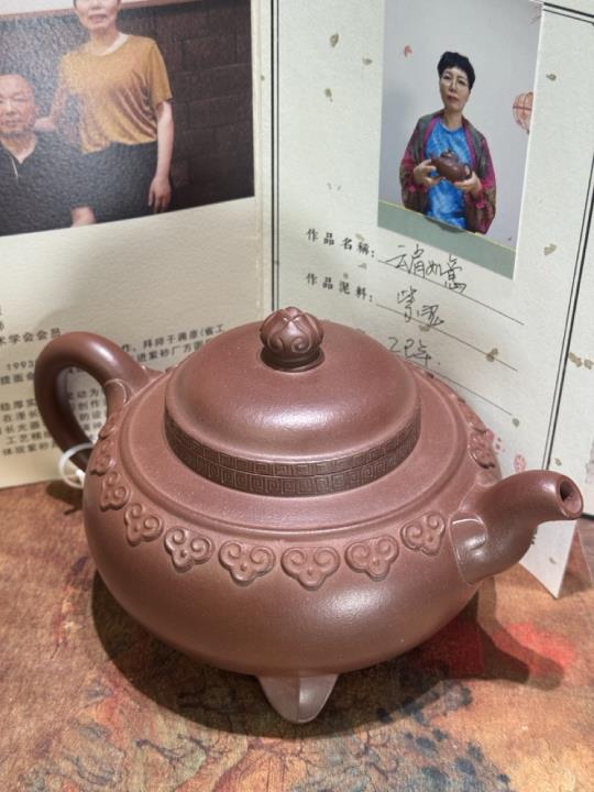 Tạo hình: Ấm thân tròn đầy, ba chân đỉnh ổn định – tượng trưng cho “thiên – địa – nhân” hợp nhất.
