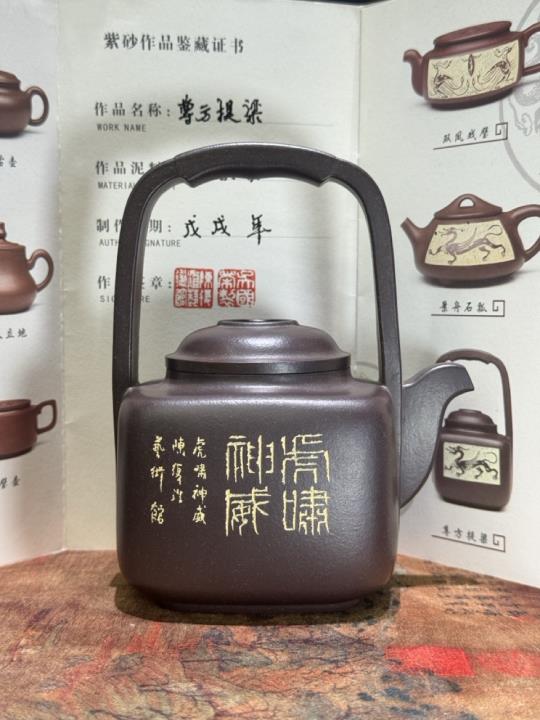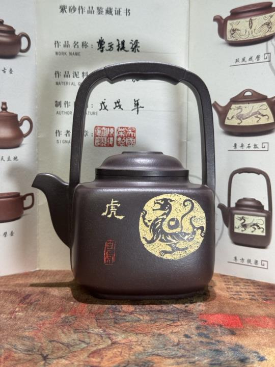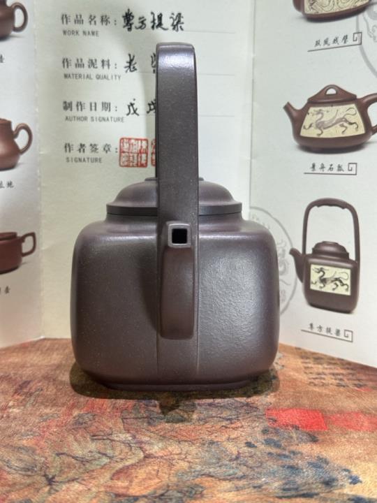 Chiếc ấm 尊方提梁 thuộc dáng đề lương (提梁壶) – dáng ấm có quai xách cao đặc trưng – được thiết kế theo phong cách tôn phương, tức là thân ấm vuông vức, mạnh mẽ, thể hiện khí chất trang nghiêm và vững chãi.