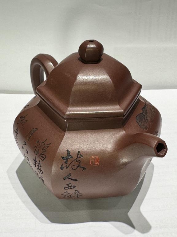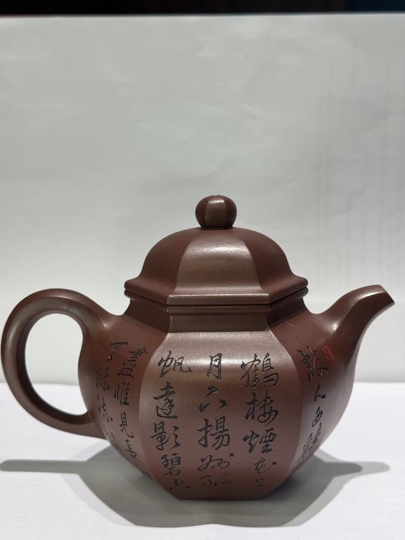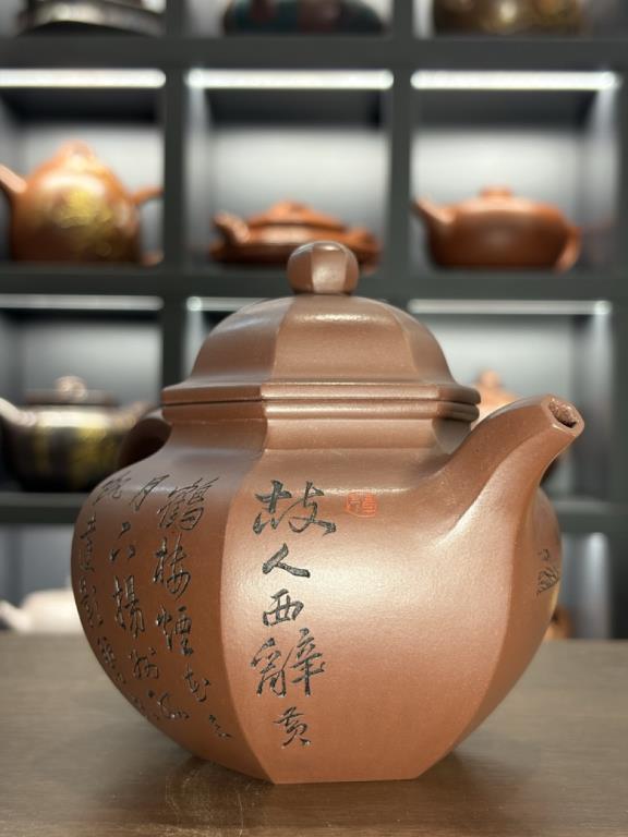 Ấm Lục Phương Đoạt Cầu là mẫu phương khí đặc trưng, với thân ấm 6 cạnh sắc nét, tạo cảm giác vững chãi – ngay ngắn.