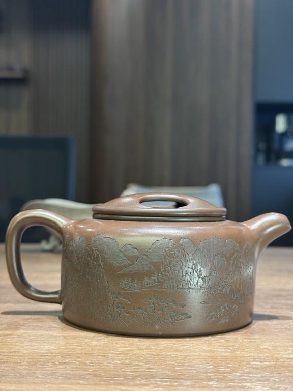 Đặc biệt, phần khắc họa và đề chữ trên thân ấm được thực hiện bởi Bạch Tuyết Thạch (白雪石) – một quốc họa đại sư, người có vai trò quan trọng trong nền mỹ thuật Trung Hoa hiện đại.