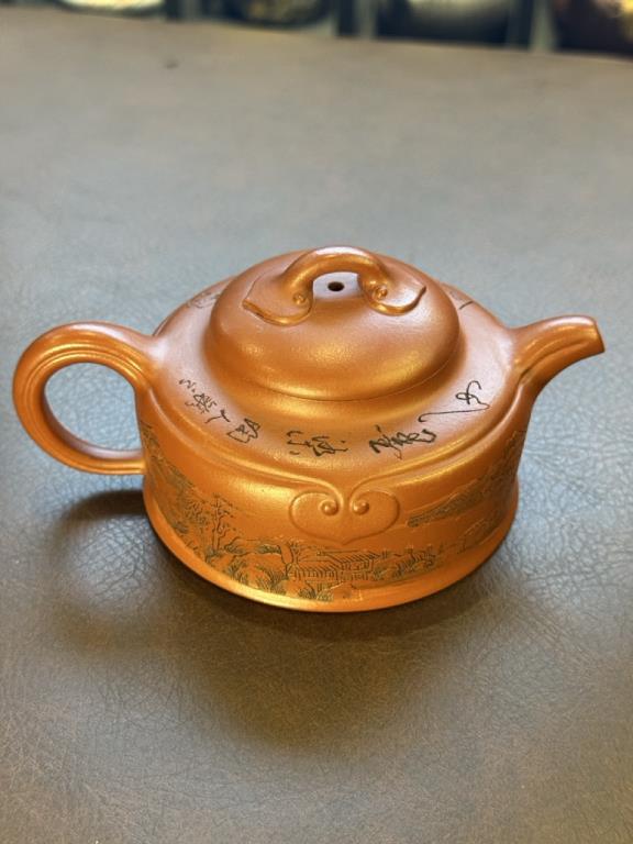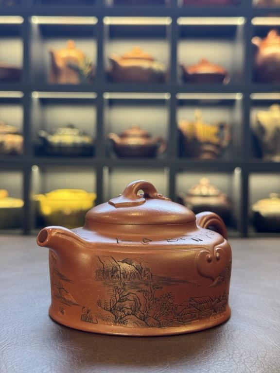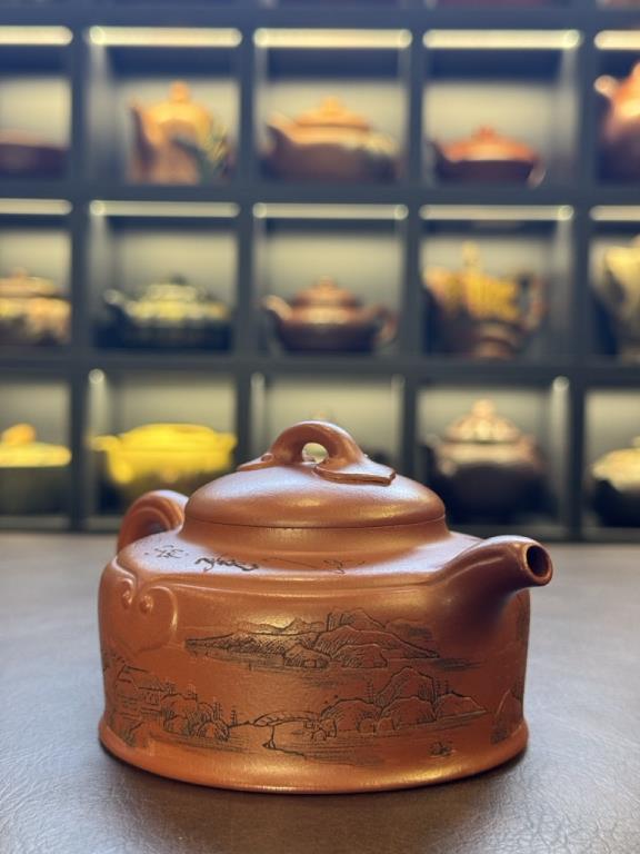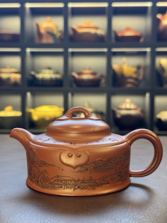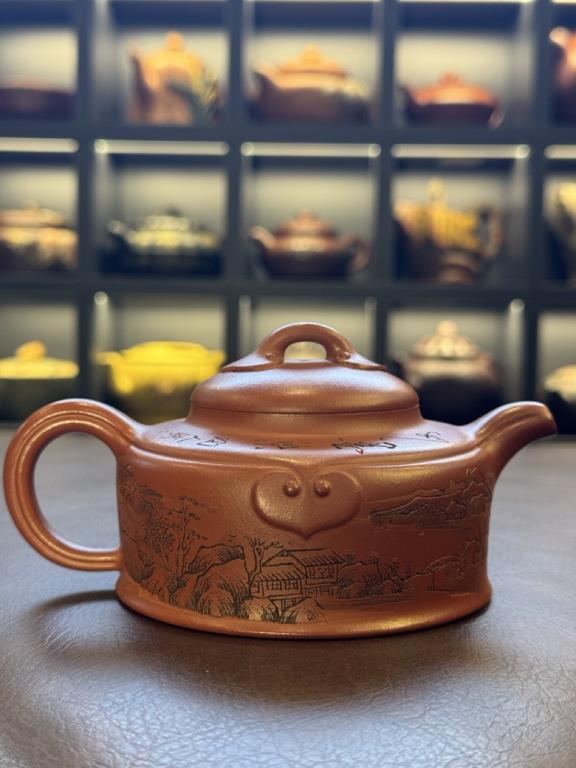 Dáng ấm mang hình tượng chuông đồng (金钟), kết hợp họa tiết Như Ý – tượng trưng cho sự may mắn, cát tường, mọi việc như ý.