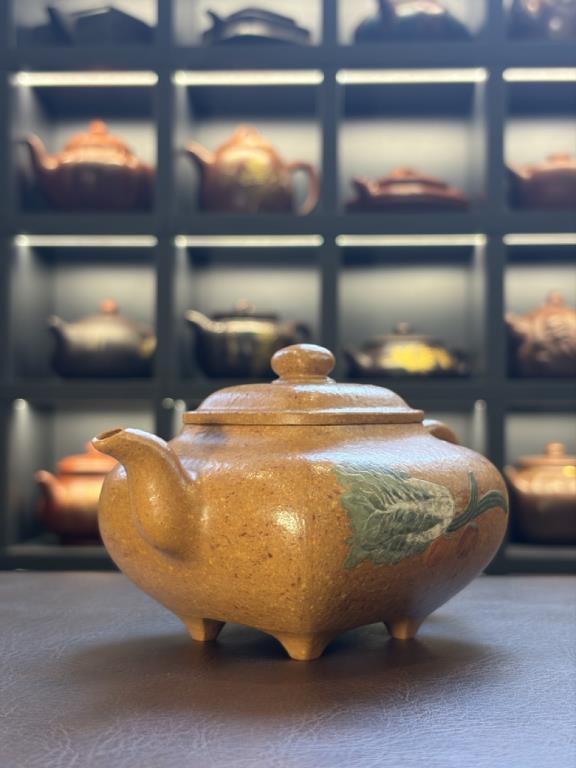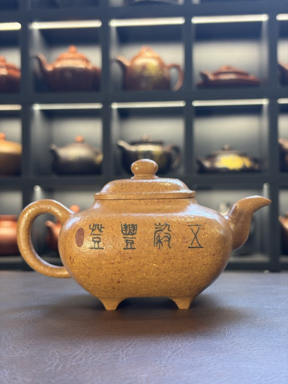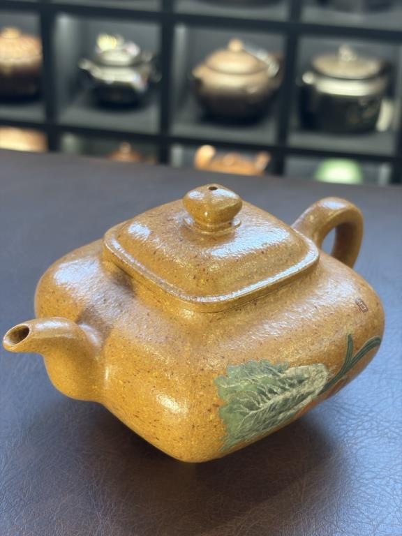 Kim Giáng Pha Truyền Lô: sắc khoáng ánh kim như vàng phủ ngọc ấm. Dáng ấm vuông ẩn tròn, vừa cứng cáp vừa mềm mại, thể hiện sự hài hòa giữa cương và nhu.