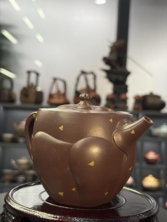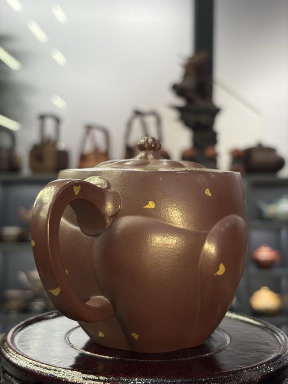 Chất đất sử dụng là Thạch Chu Hồng Hồng Nê cuối Thanh, tạo sắc thái ấm đỏ già, thiên về cổ ý, phù hợp những dáng ấm thiên về đường nét gọn và nhịp thở thanh.