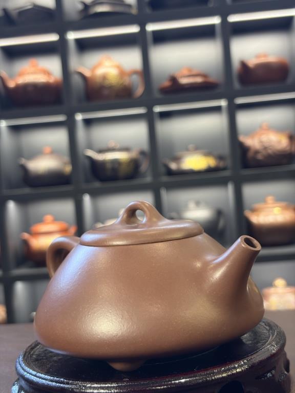 Phần đáy và phần bụng có đường nét trơn mượt, miệng ấm khá nhỏ nên dáng trông thanh tú, thon nhã; tổng thể như đứng thẳng cao ráo, “đình đình ngọc lập” (亭亭玉立).
