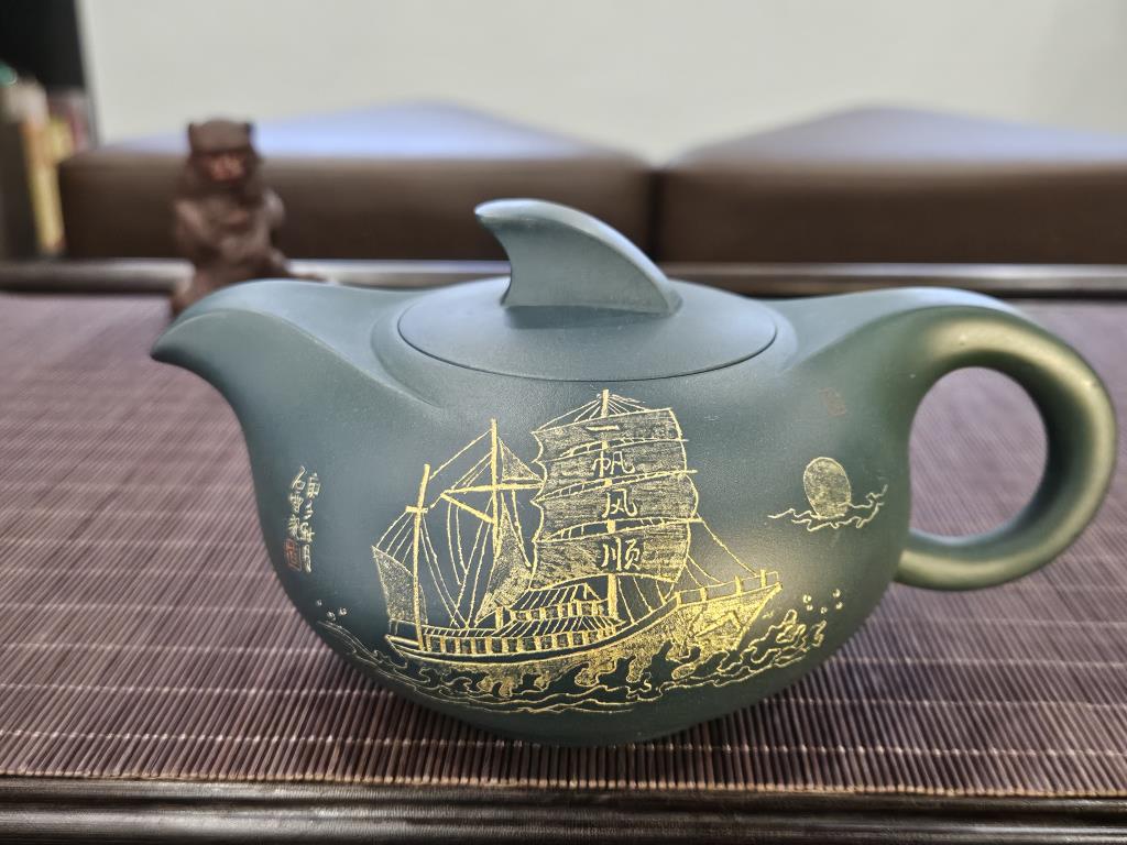 Chiếc ấm được tạo hình mô phỏng chiếc thuyền buồm no gió: