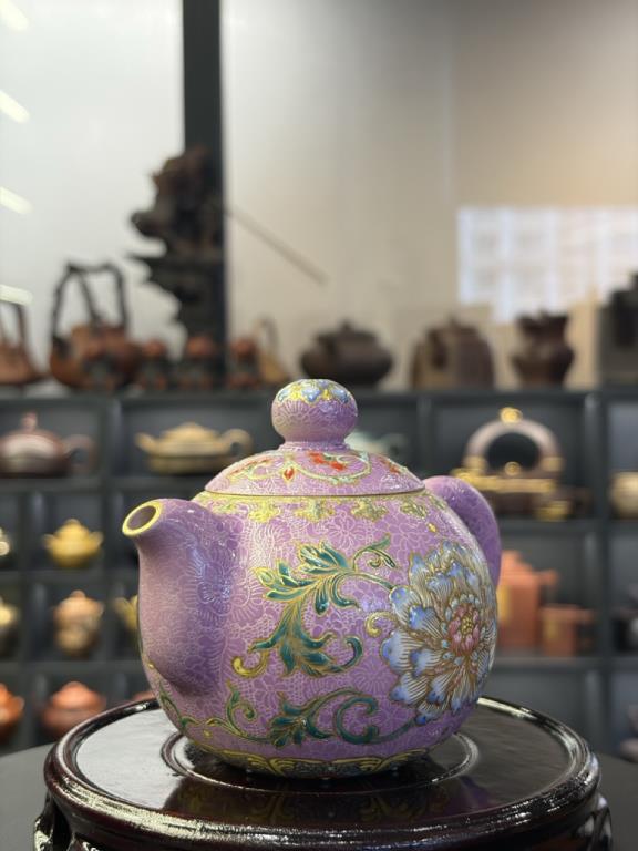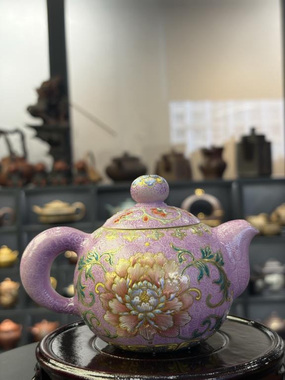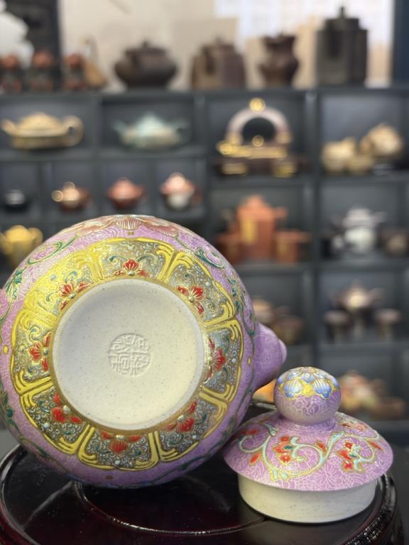 Phù Dung Châu (芙蓉珠) lấy “phù dung” làm ý tượng chủ đạo. Trong văn hóa truyền thống Trung Hoa, “phù dung” thường được dùng để ví mỹ nhân; sự sạch trong, thanh thuần gợi hình ảnh “xuất thủy phù dung” (出水芙蓉). Tác phẩm mượn nét thanh lệ của phù dung, phối với độ viên mãn của “châu” — qua thủ pháp trừu tượng và phóng đại — để nghệ nhân Diêu Linh Hương nhào nặn thành một dáng ấm vừa mềm mại vừa có điểm nhấn.