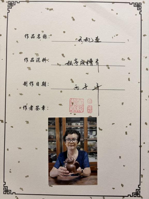 Thiên Kê Ấm, còn gọi Sơn Kê Ấm (山鸡壶), là một tác phẩm phục khắc theo mẫu kinh điển của Từ Tú Đường do Triệu Lệ Quyên thực hiện. Đây là kiểu ấm điêu tố tiêu biểu: một con “sơn kê” lặng lẽ ngồi thấp, thế “muốn bay mà chưa bay”. Phượng quan dựng cụm trên đầu, song dực xòe như đang vỗ, lồng ngực đầy đặn, mỏ nhỏ — tạo hình tròn trịa, đáng yêu. Nhưng toàn bộ lại được tổ chức khéo léo thành ấm trà: mỏ là vòi, cánh vỗ là quai, còn phượng quan là nắp. Vì muốn nhã hóa tên gọi, “Sơn Kê Ấm” thường được gọi là “Thiên Kê Ấm”.