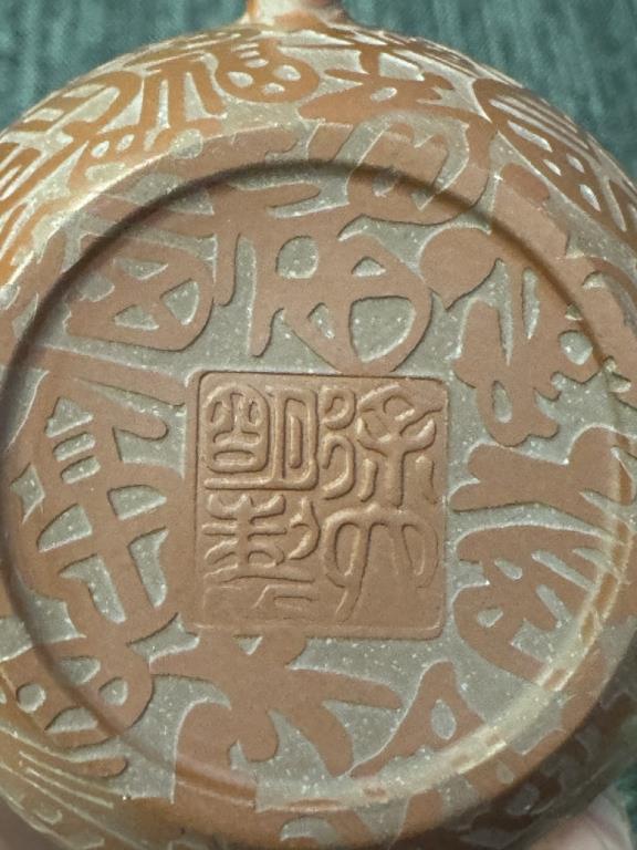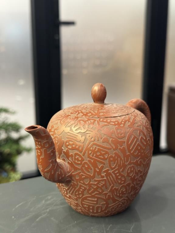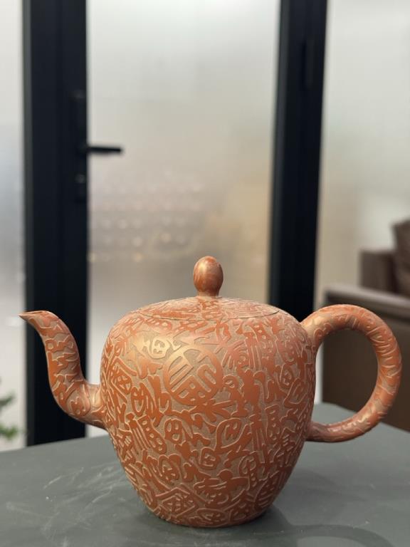 • Thân ấm được trang trí bằng kỹ thuật phù điêu (浮雕刻绘), khắc họa họa tiết Bách Phúc (百福), biểu trưng cho trăm điều phúc lành, may mắn và thịnh vượng.