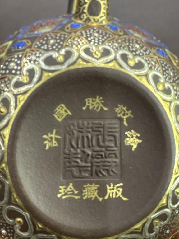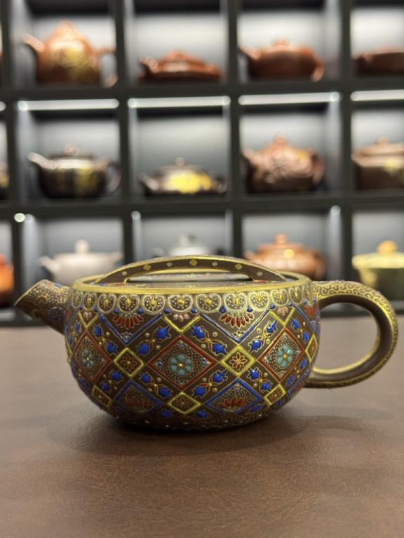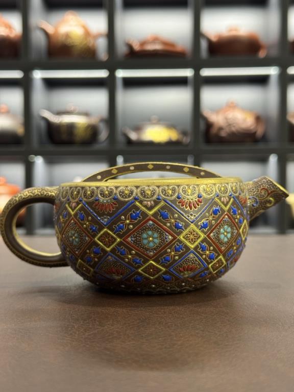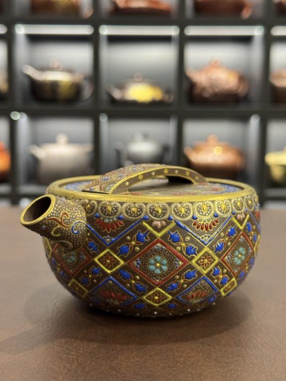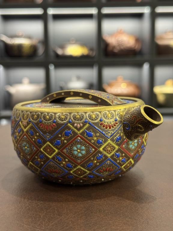 • Khi kết hợp với pháp lam rực rỡ, chiếc ấm trở thành biểu trưng cho hòa hợp giữa vương giả và nhã khí