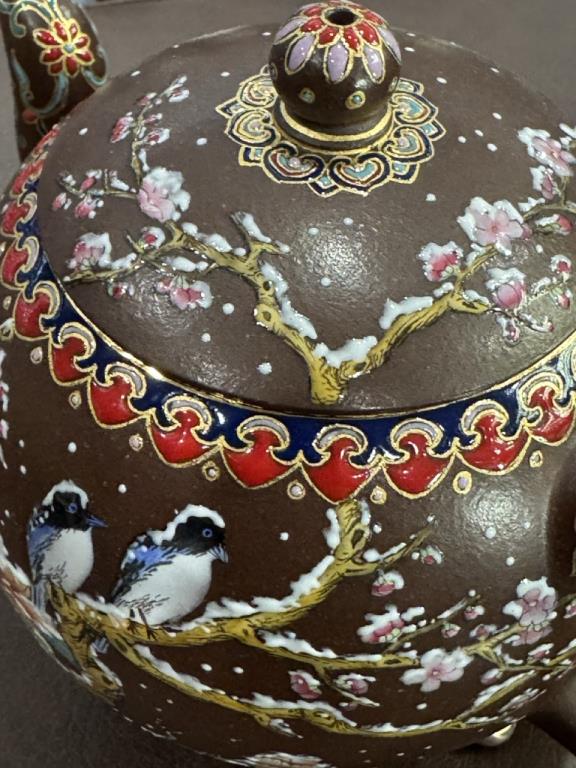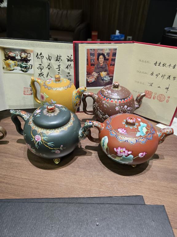 Bộ ấm này không chỉ là tuyệt tác nghệ thuật, mà còn mang ý nghĩa tứ thời cát tường, viên mãn trọn vẹn, rất thích hợp để trưng bày, thưởng trà hoặc sưu tầm.