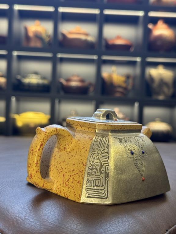 Tác phẩm Bát Phương Thạch Phiêu của Tất Thái Đường không chỉ gây ấn tượng nhờ hình thức tám cạnh độc đáo, mà còn nổi bật bởi nghệ thuật sơn mài màu hiện đại – biến mỗi chiếc ấm thành một bức tranh thu nhỏ sống động, hội tụ cả mỹ cảm truyền thống lẫn giá trị sáng tạo đương đại.