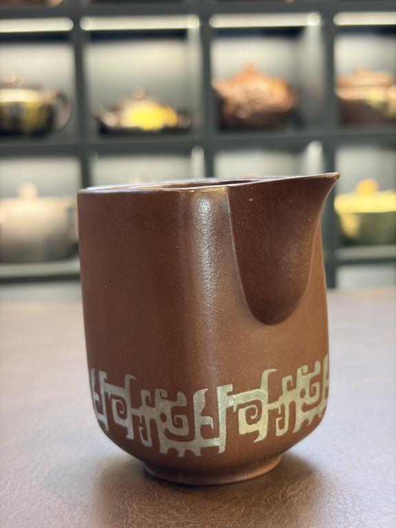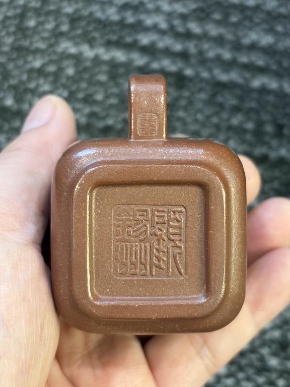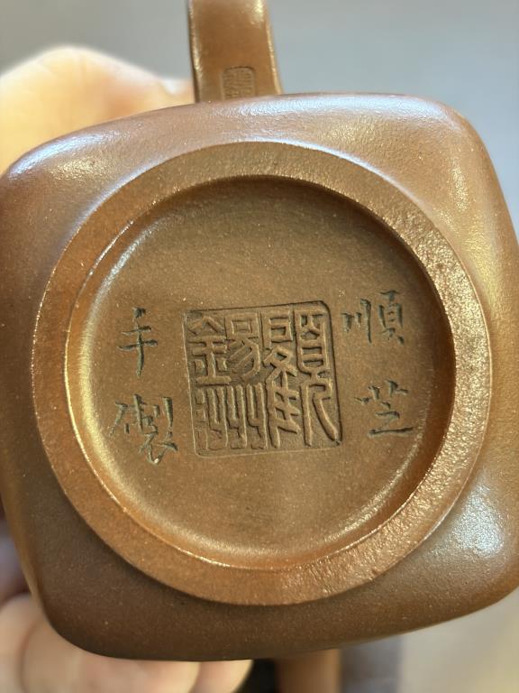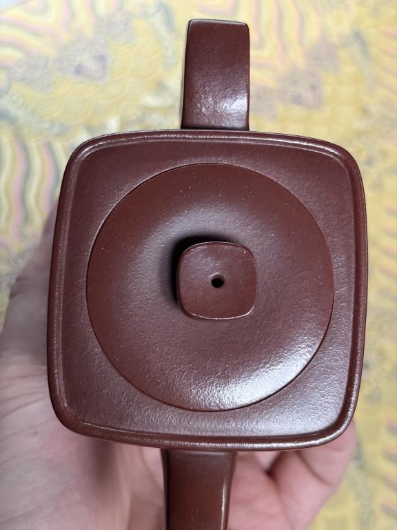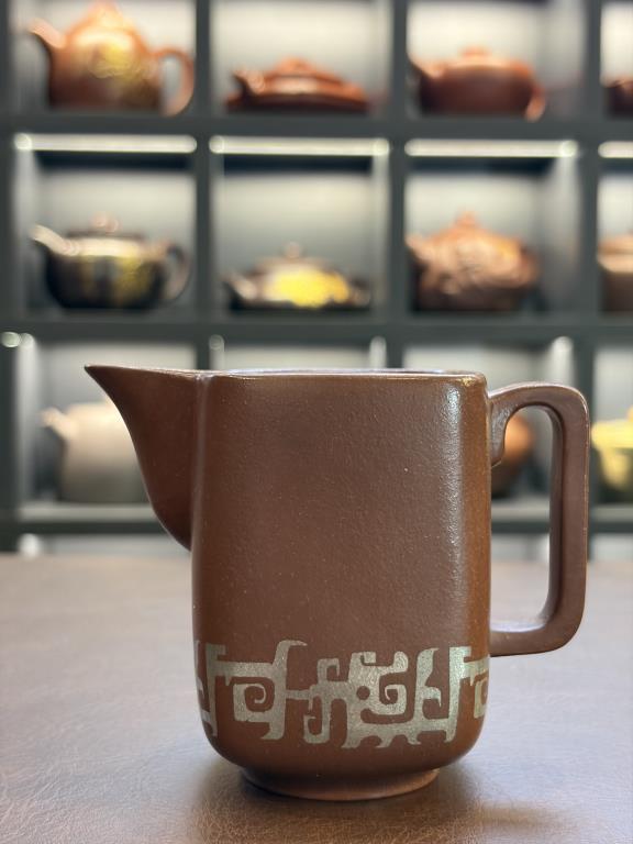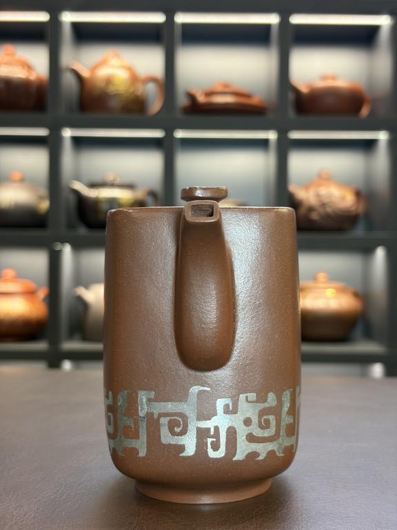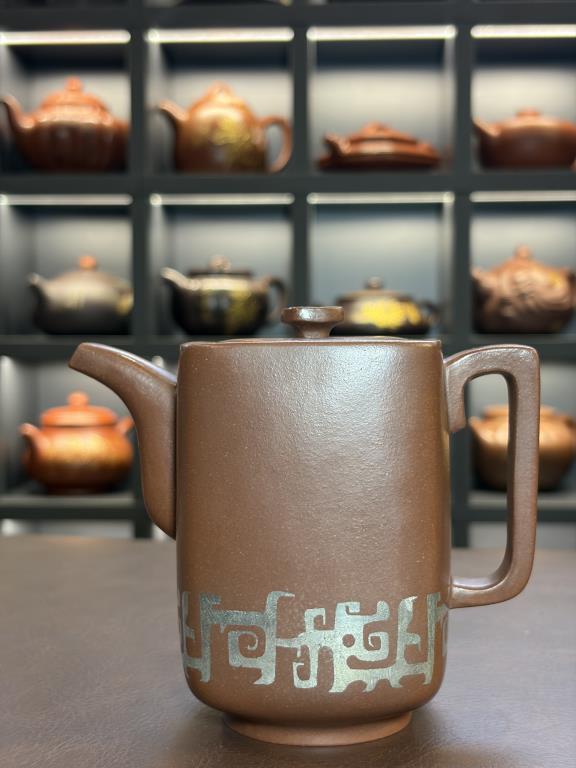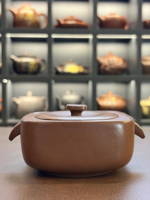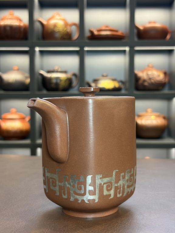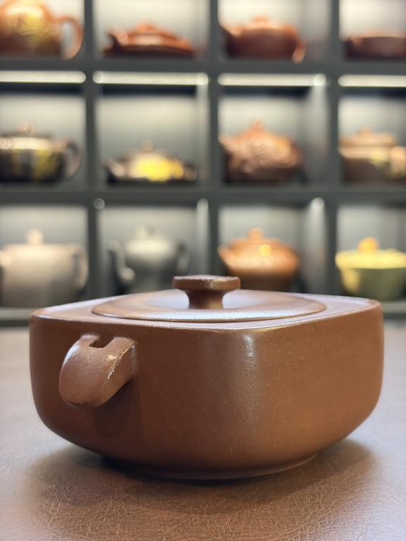 Ấm mang dáng kết hợp hài hòa giữa hình học tròn và vuông – phần thân tròn trịa đại diện “thiên viên”, đế và nắp thể hiện “địa phương”, với bố cục chặt chẽ, khí vận uyển chuyển. Đây cũng là một biểu tượng nghệ thuật hình học tử sa cổ điển.