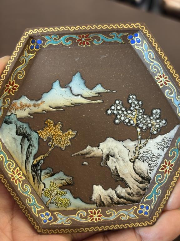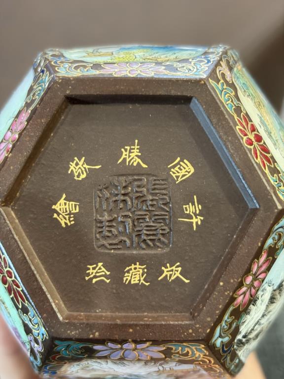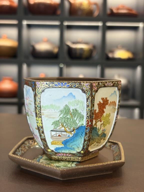 Hình thức kết hợp: Tử sa + trang trí Pháp lang thái của nghệ nhân cấp quốc gia tại Cảnh Đức Trấn (江西景德镇国大师)
