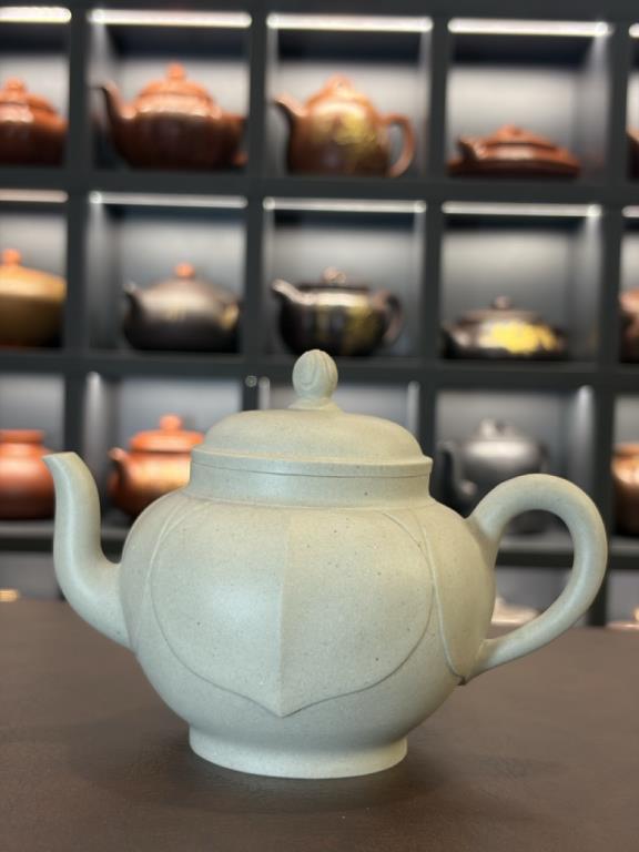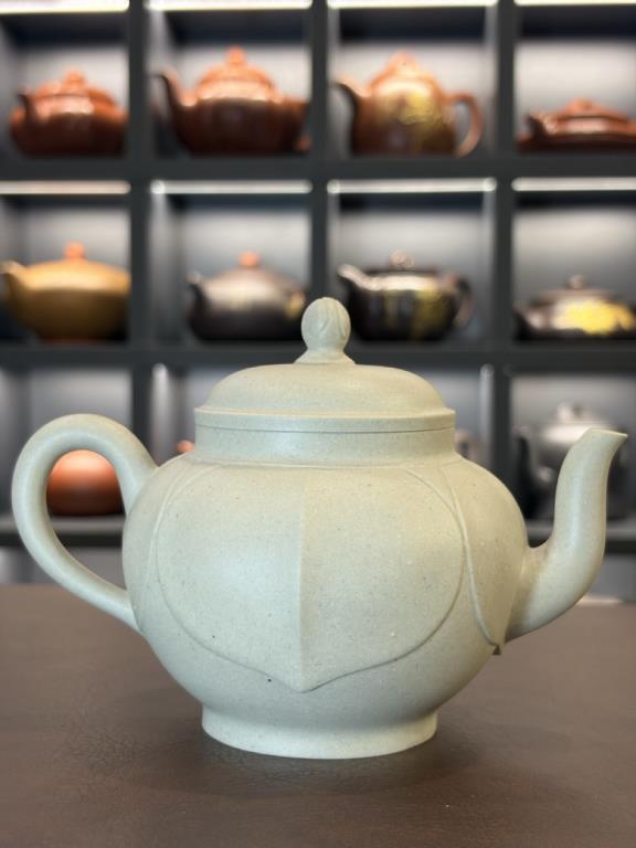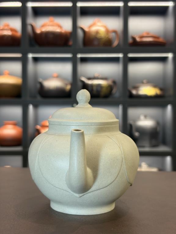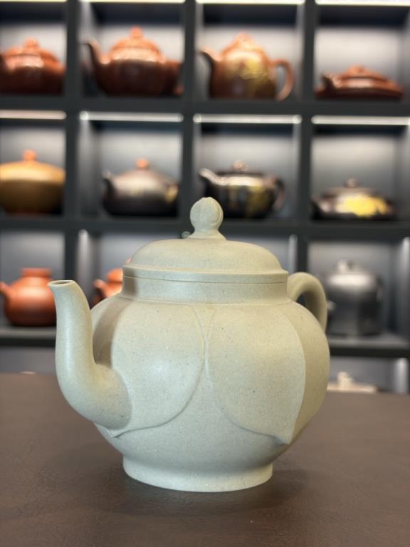 Tác phẩm “Liên Biện” (莲瓣壶) là một thiết kế nguyên bản của nghệ nhân Hà Linh (何玲), được chế tác hoàn toàn thủ công từ chất đất quý hiếm Dương chi bạch ngọc đoạn nê (羊脂白玉段泥) – dòng đất do nghệ nhân lưu giữ và tuyển chọn riêng.